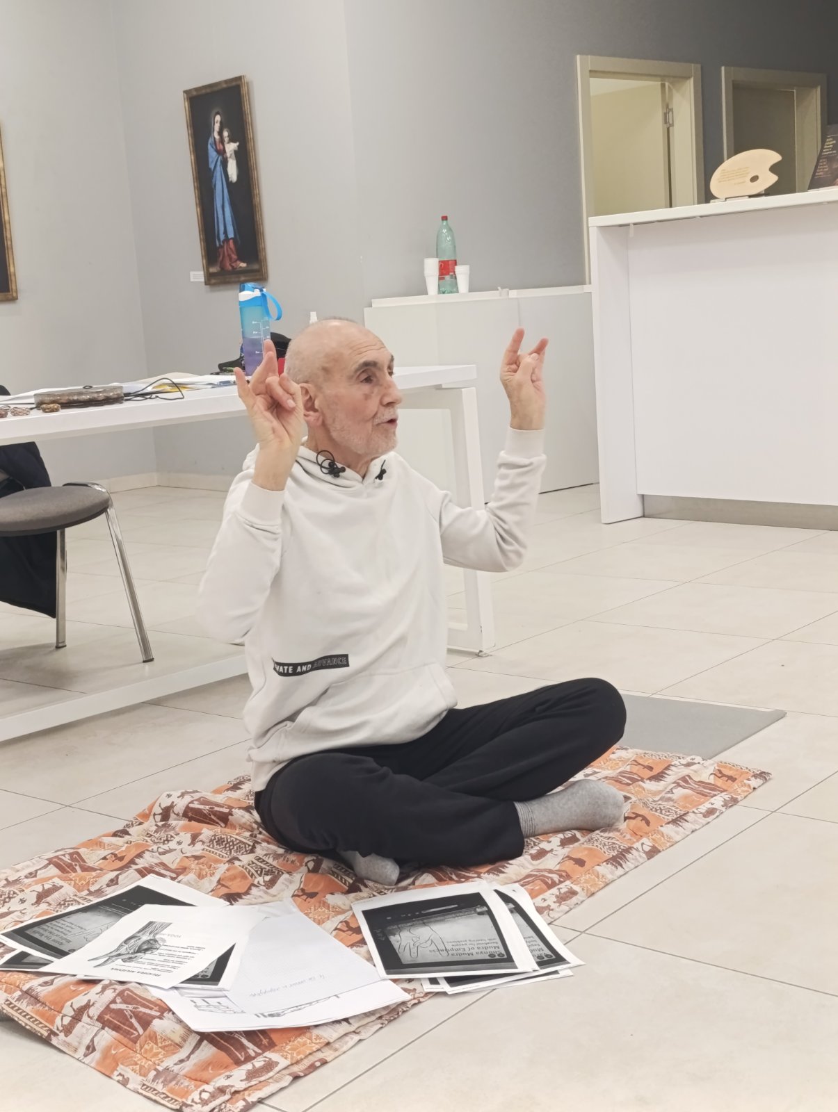 Informativno sam govorio o važnim energetskim tačkama na telu, i govorio sam o vežbama – položajima sa prstima i šakama što se u literaturi zovu – mudre.“